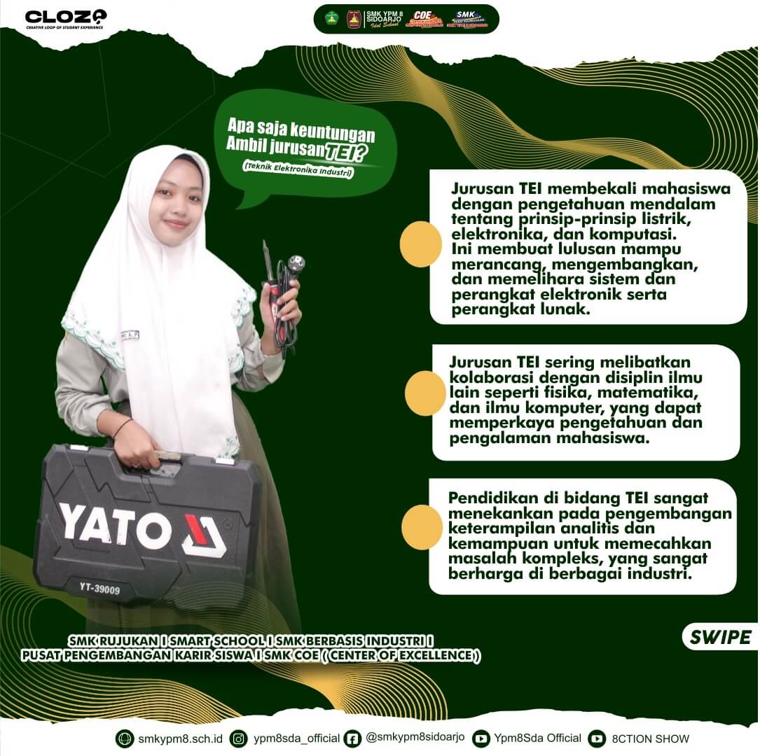 Jurusan ini mempelajari sistem elektronika yang digunakan dalam dunia industri, seperti pengendalian otomatisasi mesin, sistem kelistrikan, dan pemrograman PLC (Programmable Logic Controller).